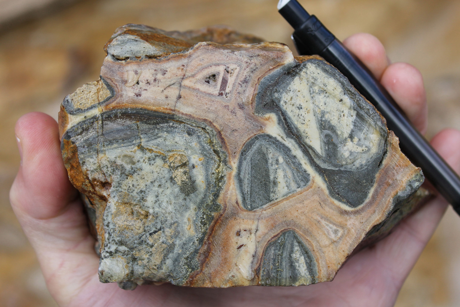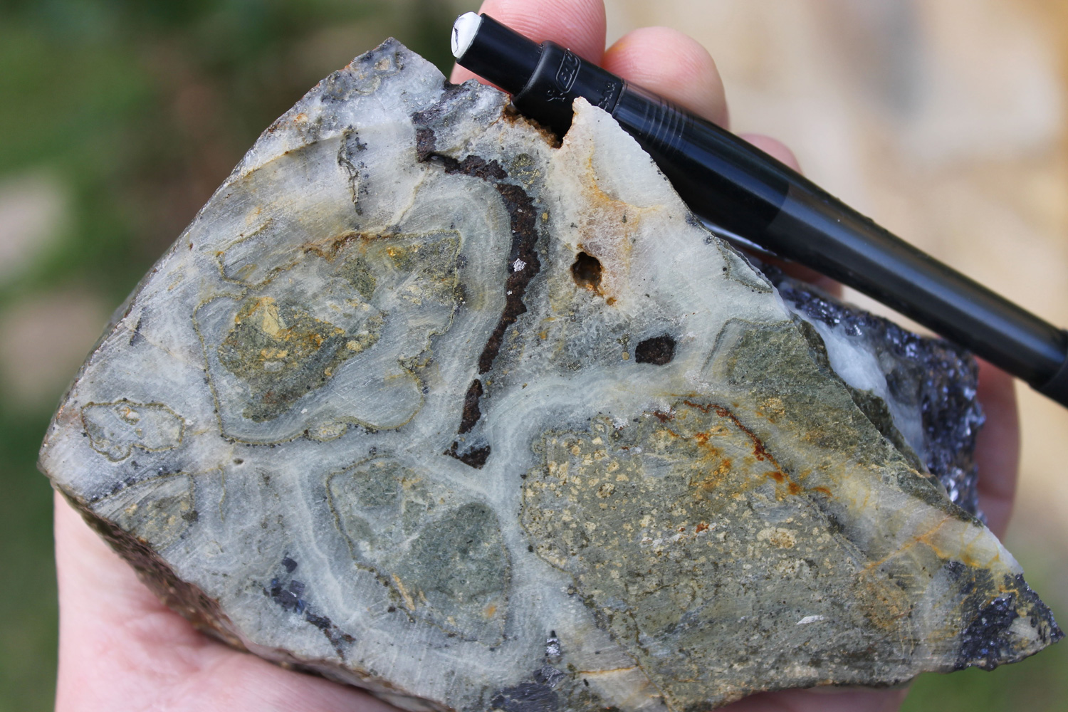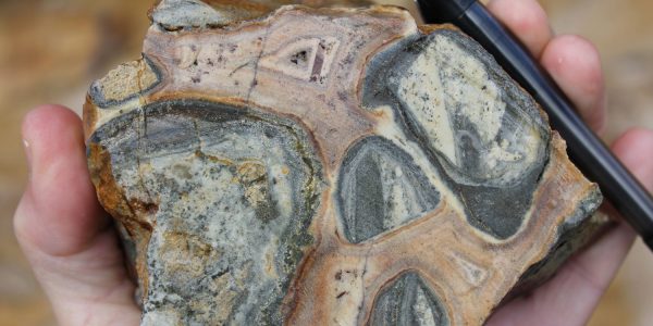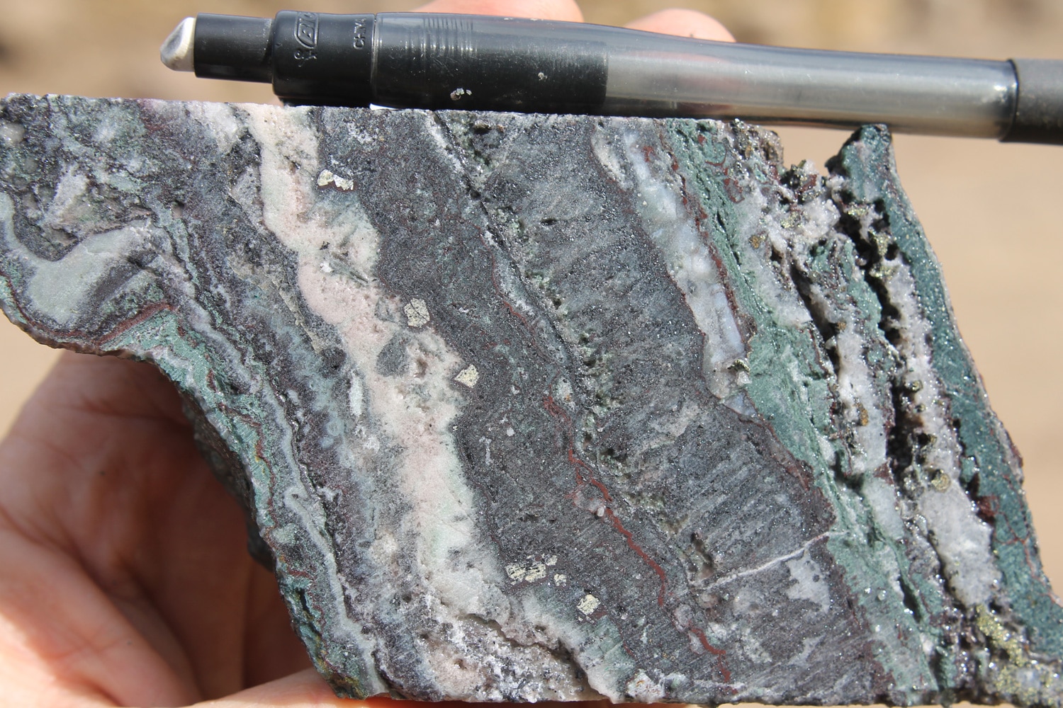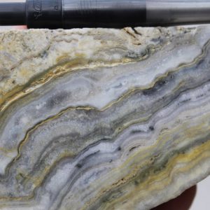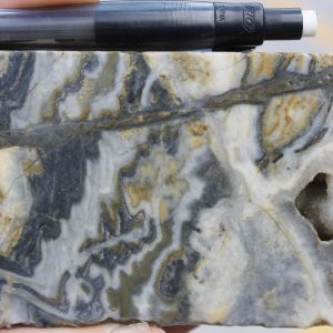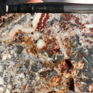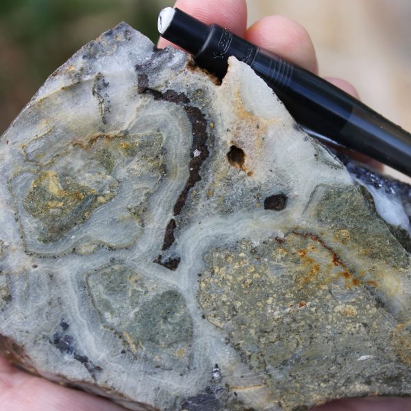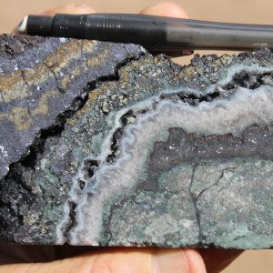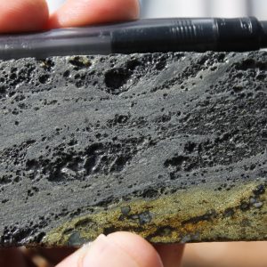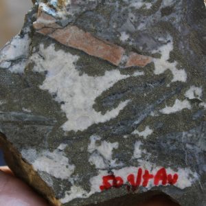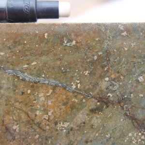 - Competent host rocks such as andesite flows or welded tuffs which fracture well to promote through-going fissure vein formation, but may locally be obscured by incompetent rocks such as lapilli tuffs and volcaniclastic sediments which do not fracture well, especially where clay altered. Blind vein targets may occur in these settings where tuffs and volcaniclastic sediments overlie andesite.