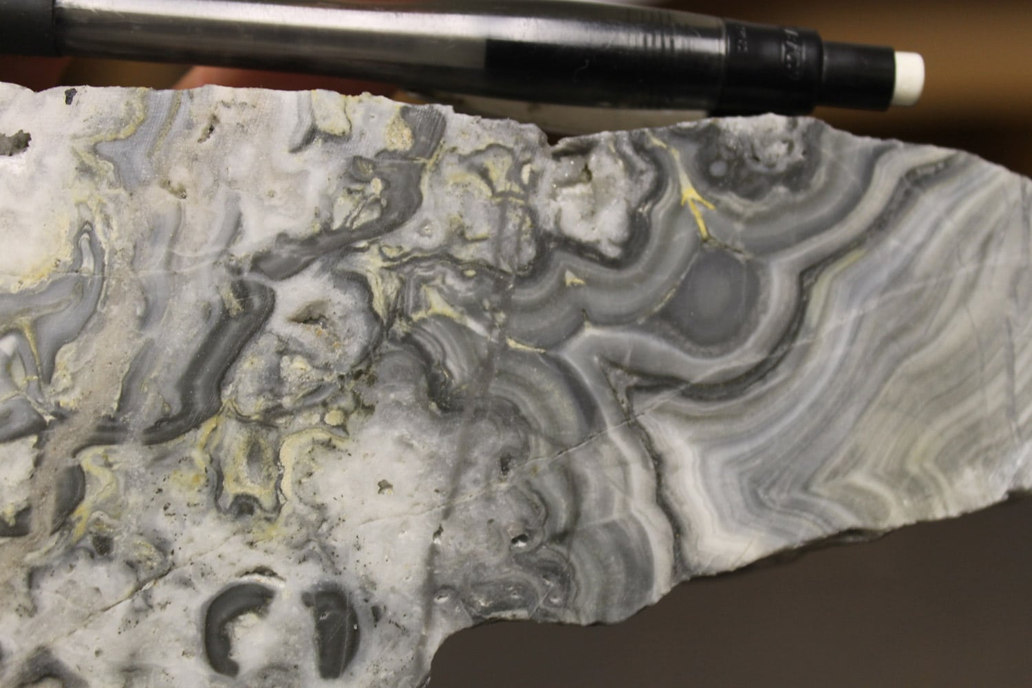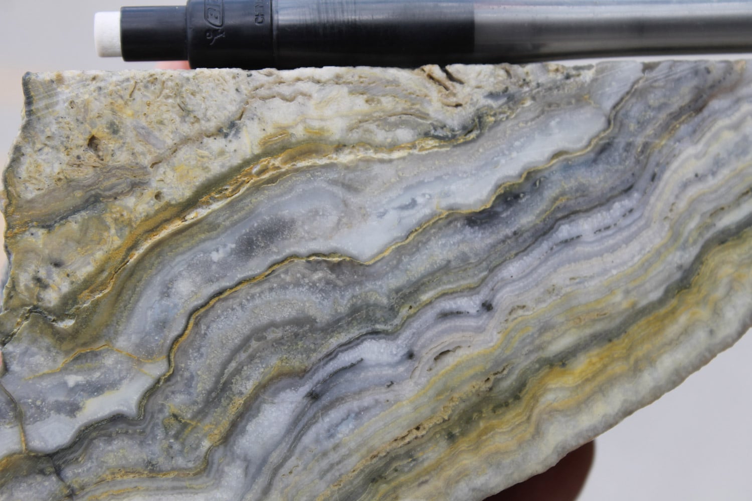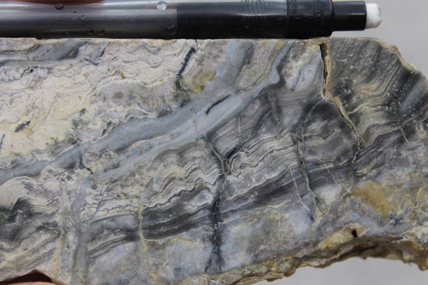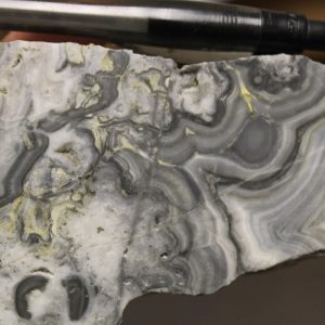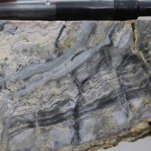 - Dilatant structures, that best host carbonate-base metal Au vein mineralisation, typically occur in the steeper dipping parts of listric faults in extensional settings such that ore shoots display overall flat plunges as precious metal grades and vein thickness decline in flatter dipping parts of listric faults. Components of strike-slip deformation may result in the development of flexures defined as changes in vein strike which may host steep plunging components of ore shoots superimposed on the overall flat plunges. Flat plunging ore shoots may locally occur within the flatter dipping parts of reverse faults in compressional settings (Corbett, 2012). Moderate dipping vein-hosting structures might refract to steeper dips as they pass from incompetent tuff to competent andesite, and so promote the formation of flat plunging ore shoots. Pencil-like ore shoots of varying orientations may result from fluid mixing at the intersection of structures carrying rising pregnant ore fluids with collapsing oxidised or bi-carbonate ground waters.