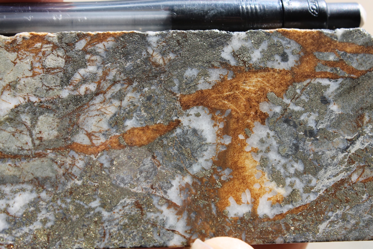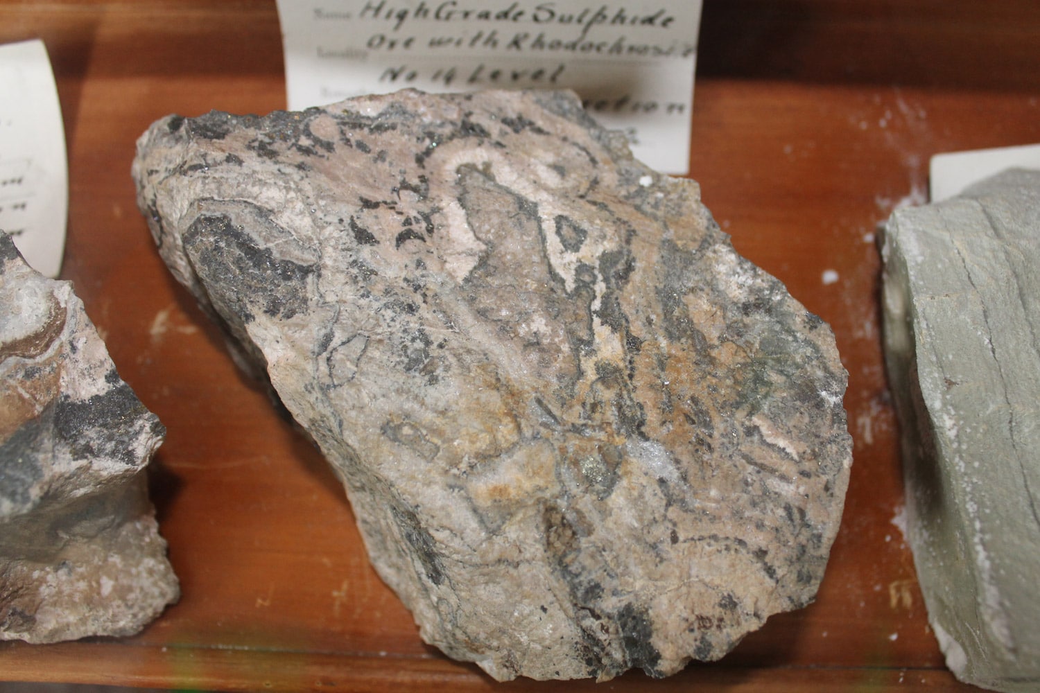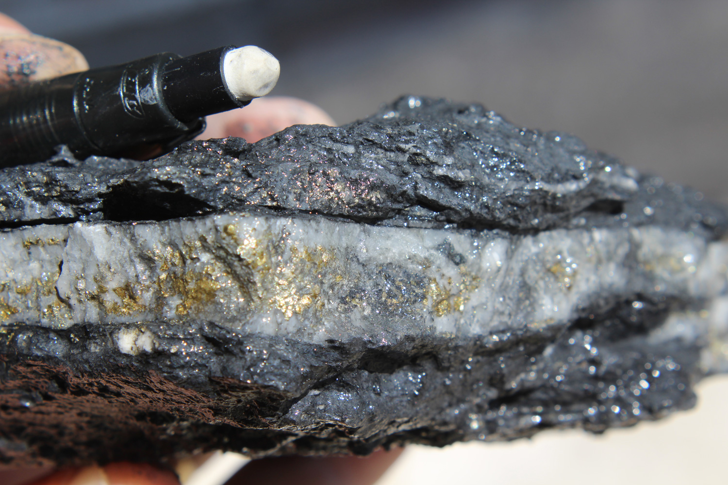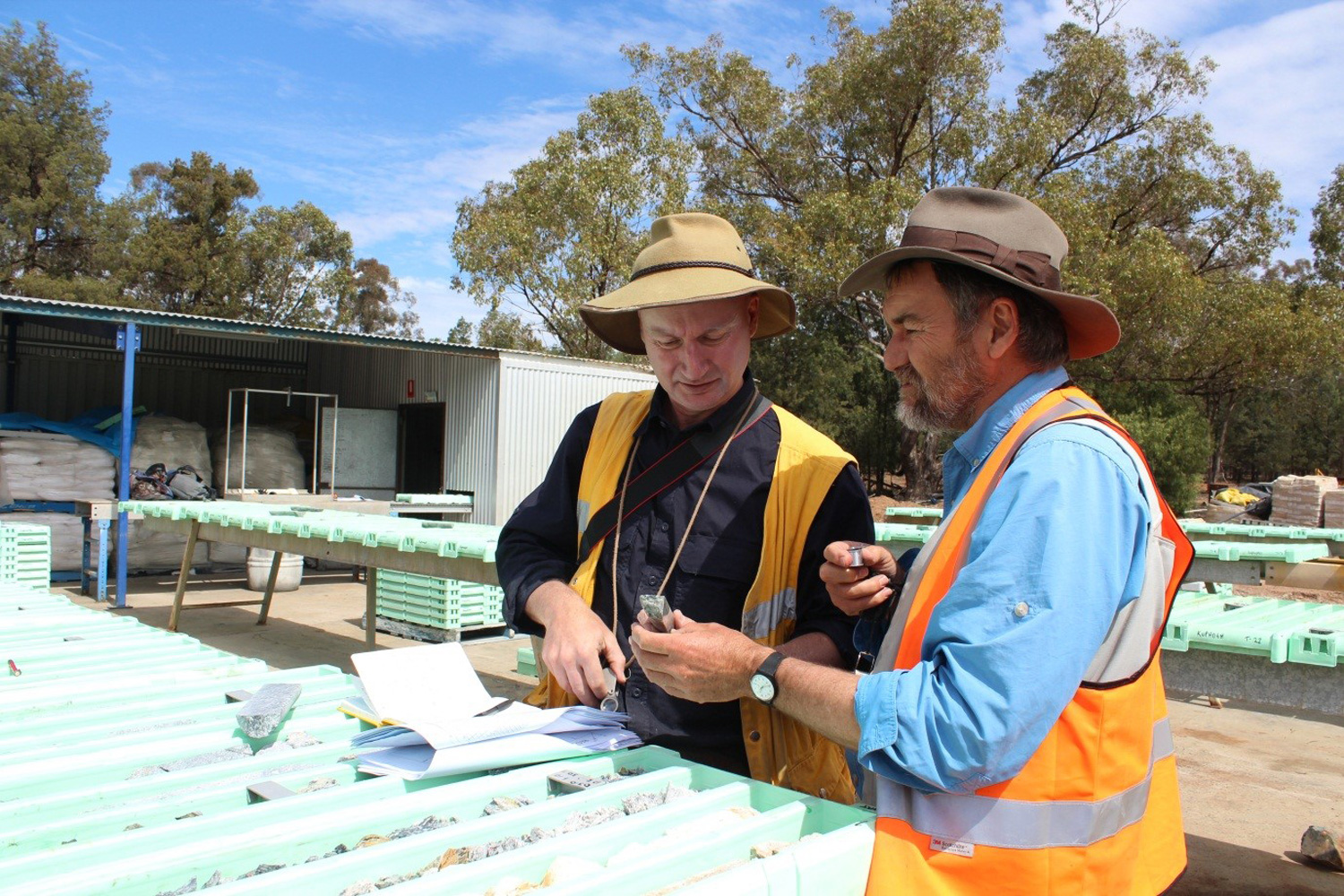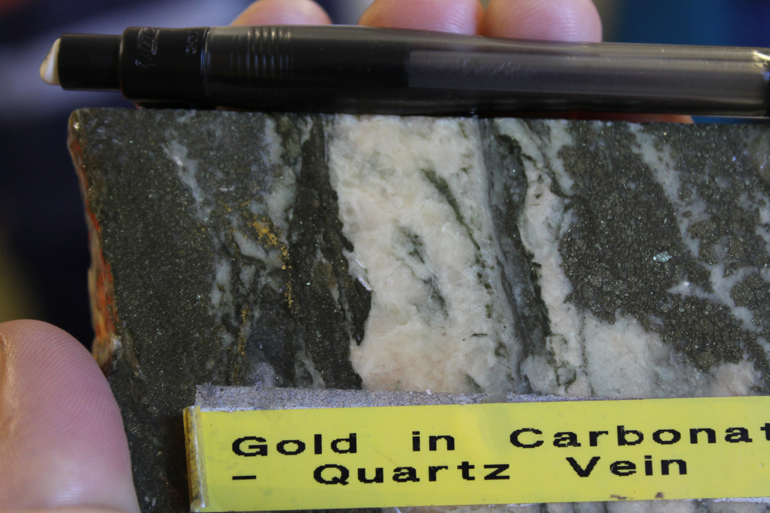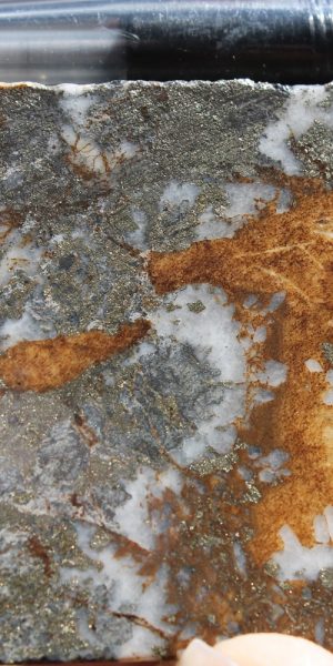 - Efficient mechanisms of Au deposition provided by the mixing of rising pregnant ore fluids with oxidising evolved ground waters which facilitate enhanced Au deposition (Leach and Corbett, 1998). Gangue minerals within the ore assemblage which provide evidence of the fluid mixing include hypogene haematite for oxygenated ground waters, Mg, Mn or Fe carbonates (ankerite, rhodochrosite or siderite) for bicarbonate waters and kaolin for acid sulphate ground waters.