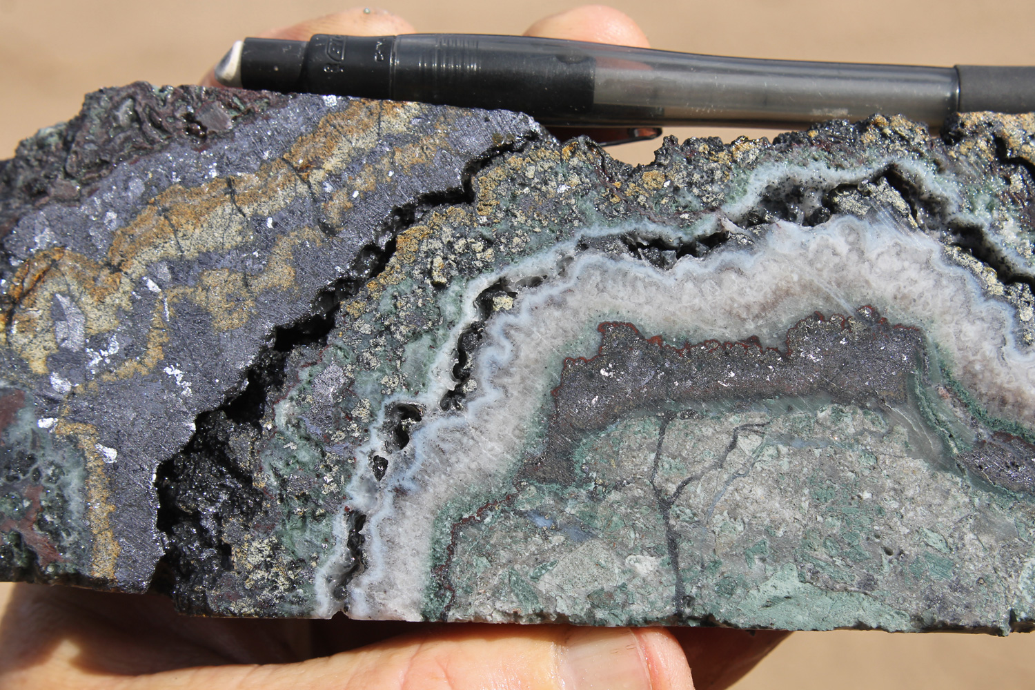 - Low sulphidation epithermal carbonate-base metal Ag-Au veins display vertical zonation in systems that may develop over 1km vertical extents, and so the metal budget is partly controlled by the level of erosion. A typical metal zonation varies from Cu + Au at depth through Au-Ag with Zn>Pb and rising to become Ag-rich in the upper portions while Sb, Hg and As may be anomalous above the vein zone and may be used as pathfinder elements. The upper portions of many vein systems evidenced by the presence of white low Fe sphalerite usually display higher precious metal grades.